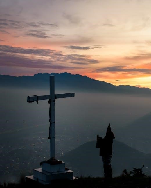 Contemplating the Passion of Christ through the Stations of the Cross invites believers to deeply reflect on His suffering and love. Each station represents a pivotal moment in His journey to Calvary, offering a spiritual pilgrimage. By meditating on these events, individuals can foster empathy, gratitude, and a profound connection to Christ’s sacrifice. The Stations guide believers to transform suffering into love, embracing the redemptive power of His Passion. This devotion, supported by prayers and reflections from PDF guides, encourages spiritual renewal and a deeper understanding of Christ’s gift of salvation, inspiring believers to live with compassion and faith.